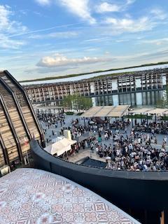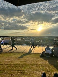 大屋根リングの上の芝生で1時間半寝ながら花火を待ちました。